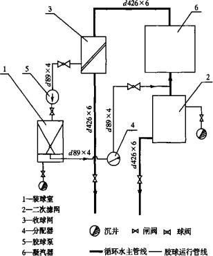 1)膠球輸送管不能有硬彎;投球管路應伸到循環水管中心,且投球管出口須與循環水流方向相反,以便膠球均勻進入凝汽器各銅管。