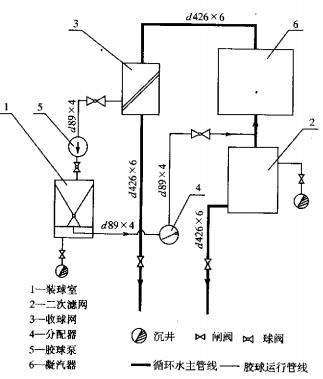 (1)膠球清洗裝置系統見圖1。