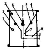 注:1,2.3—同圖2,4—網(wǎng)板,5——軸,6——導流翼,7——集球箱,8——膠球引出管
