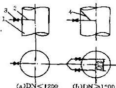 膠球管路應(yīng)短直、流暢.變徑頭圓滑以減小系統(tǒng)的阻力損失。投球管宜布置在距凝汽器循環(huán)水進口有一定距離的直管段。投球管伸至循環(huán)水管中心,其出口逆向循環(huán)水流方向。循環(huán)水管公稱直徑DN<1.2m時,投球管為1根;DN≥1.2m時,投球管為2根,見圖5。