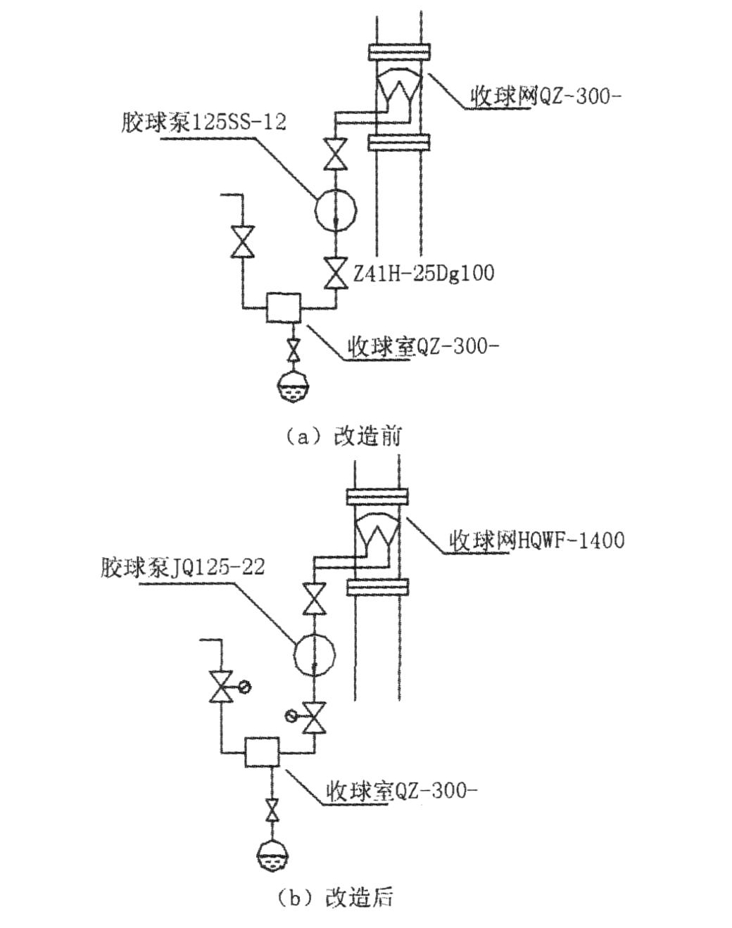 kW。為節約現有資源,新系統將沿用老系統的收球筒、控制柜,僅將原來的手動門更換成電動球閥。